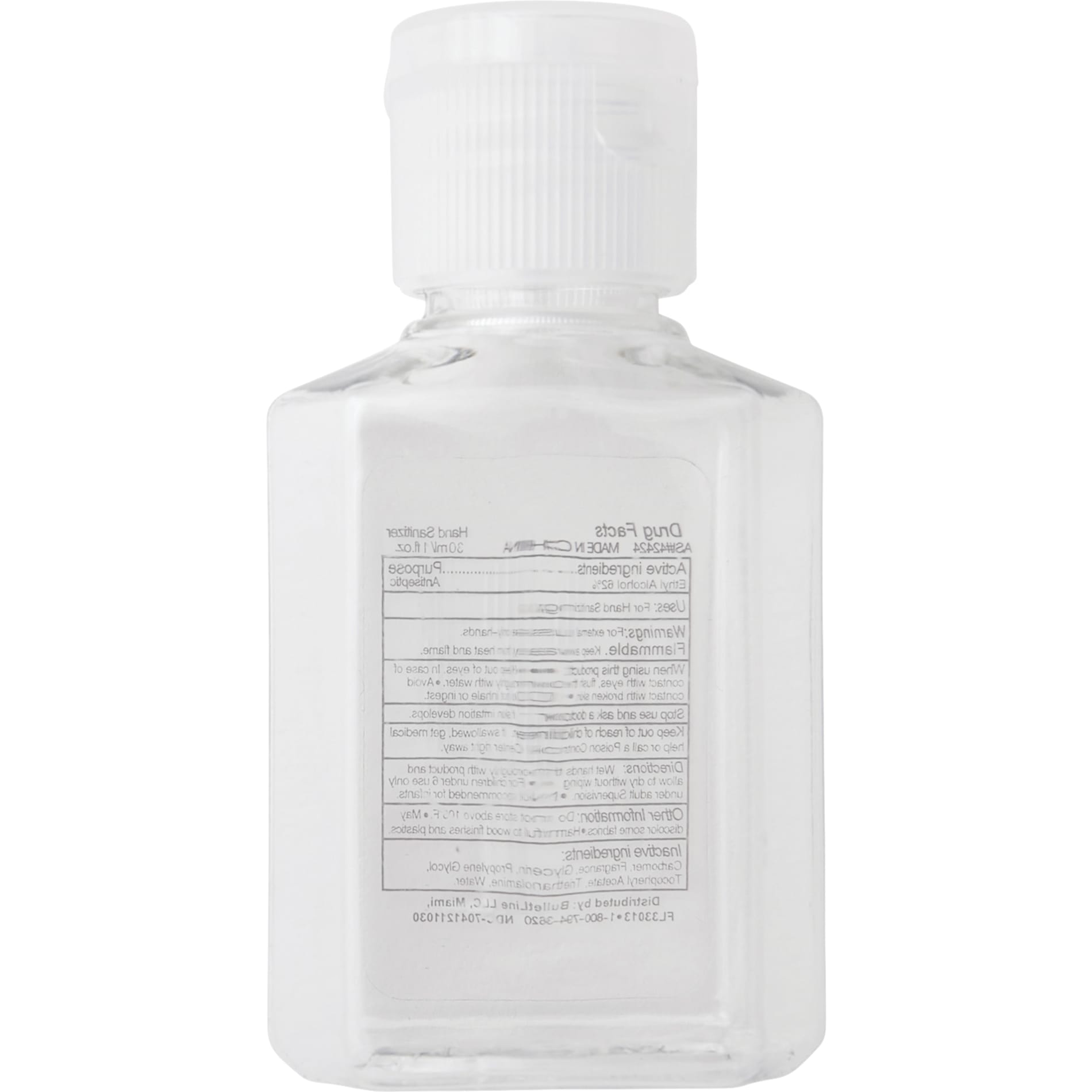 The 1oz Squirt Hand Sanitizer is an alcohol-based, 1 ounce (30ml) hand sanitizer in a squeeze bottle with a flip-top lid and a 62% alcohol content. Meets FDA requirements and is available for shipment within the United States (including Alaska, Hawaii & Puerto Rico). Not available for export. See General Information page for additional air shipment charges. Single color decoration only.
